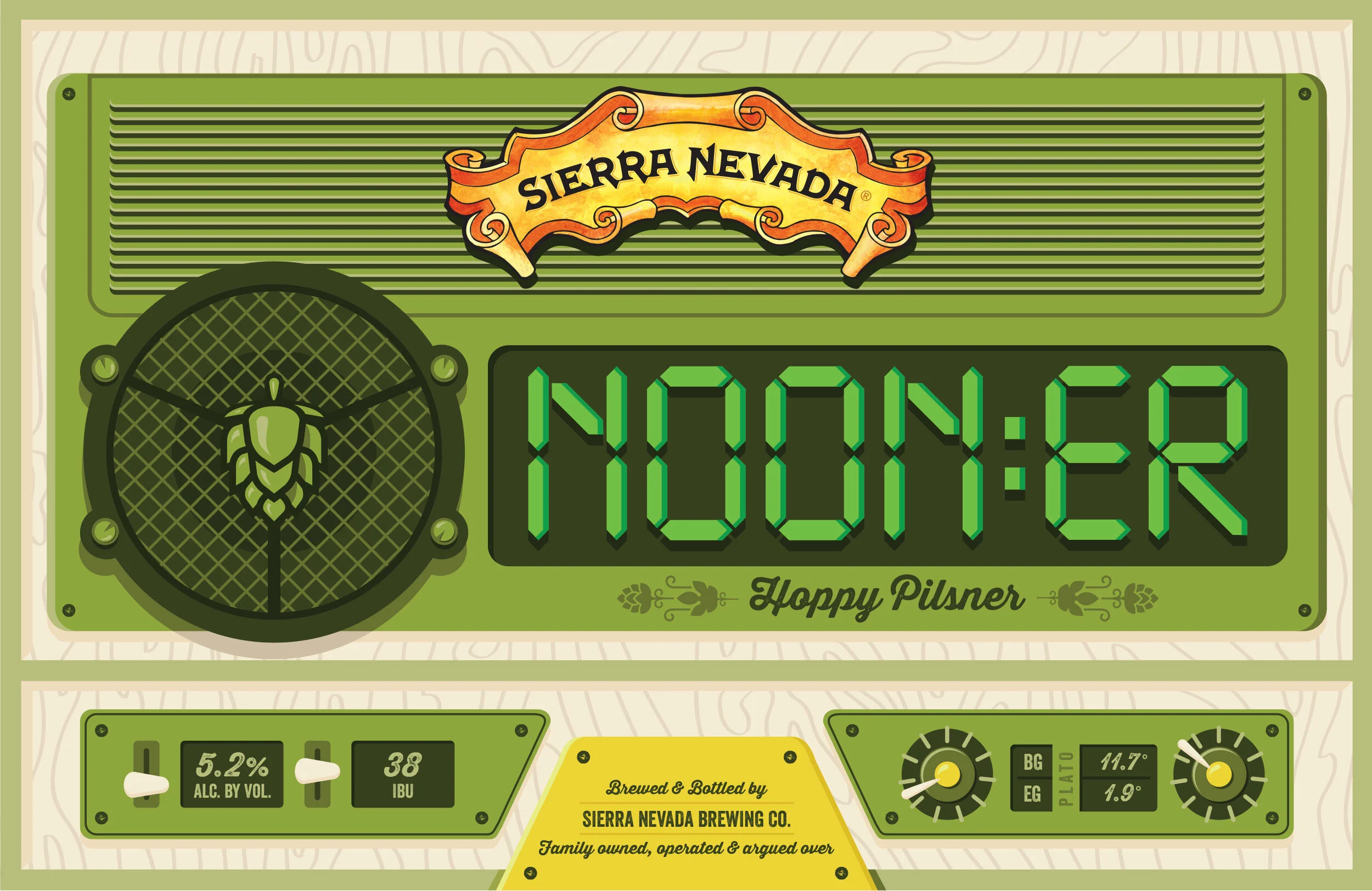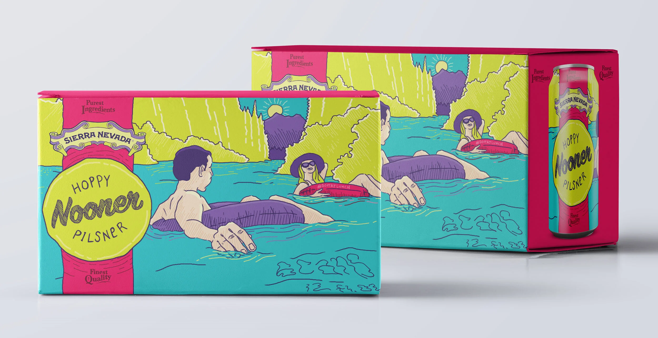3 | NOONER HOPPY PILSNER: Gather your friends, pack the gear, and head out to wherever the day may take you. A midday go-to, Nooner is a take on the classic German-style pilsner—one of the original session beers. I helped Sierra Nevada explore multiple designs for this easy drinking and welcoming beer.
